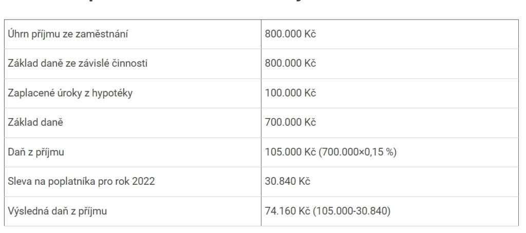 Příklad odpočtu úroků z úvěru na bydlení za rok 2022