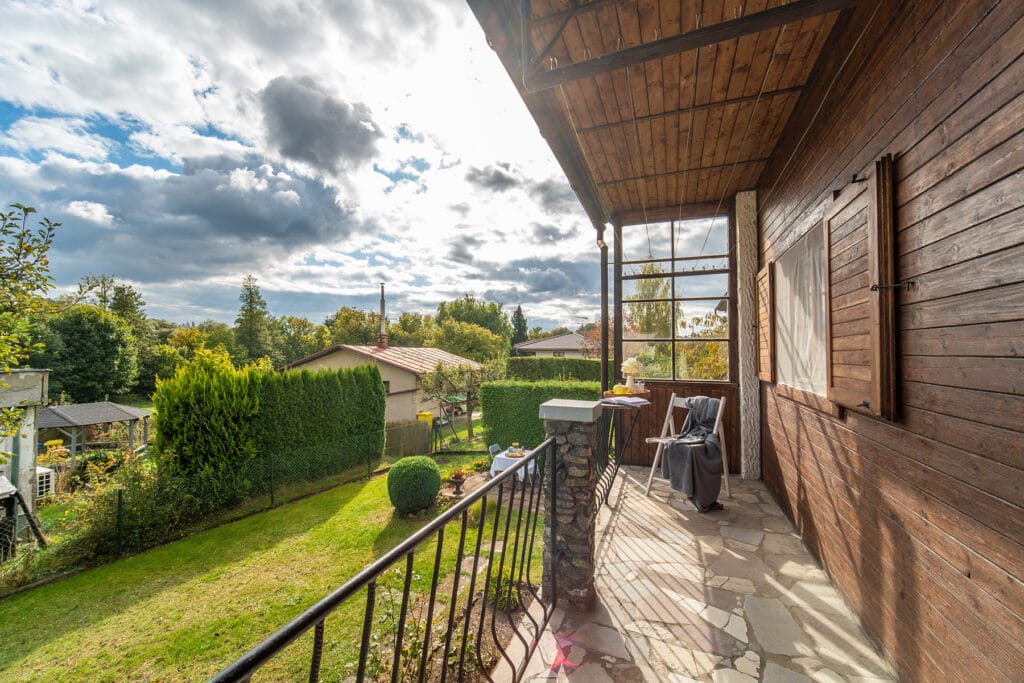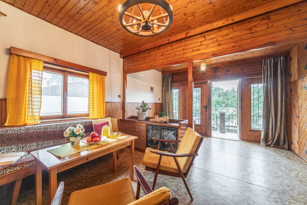 K chatě patří udržovaná zahrada se vzrostlými ovocnými a okrasnými stromy včetně pěkného vydlážděného místa pro příjemné posezení a relax.
