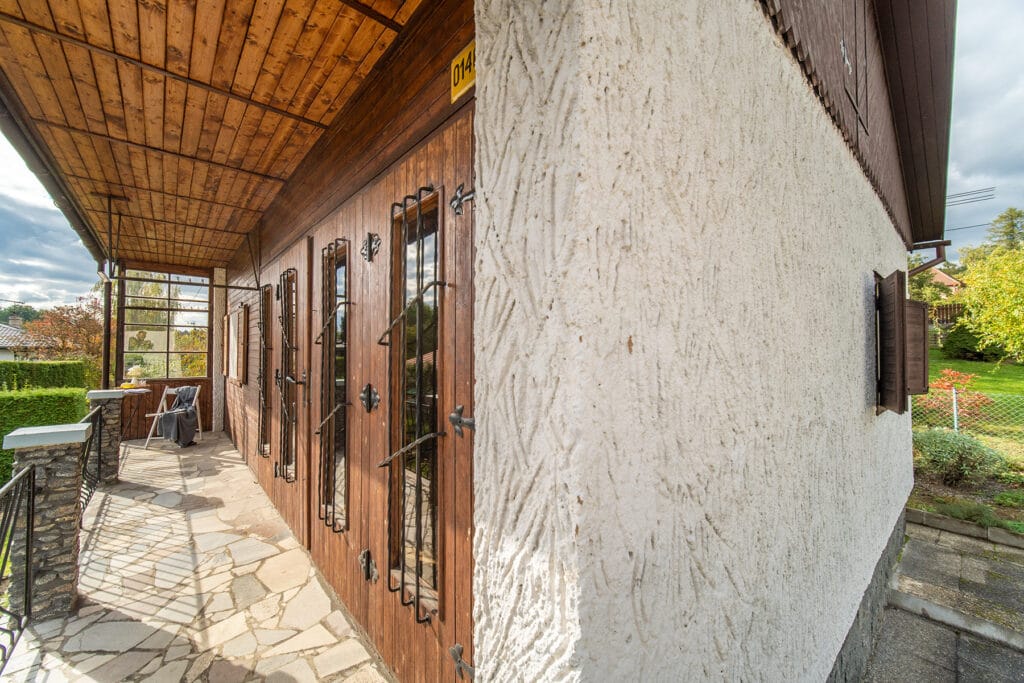 VODA: na zahradě se nachází kopaná studna (cca 7 m hluboká), která je společná i pro sousední chatu. Ohřev vody zajišťuje elektrický bojler umístěný v garáži.