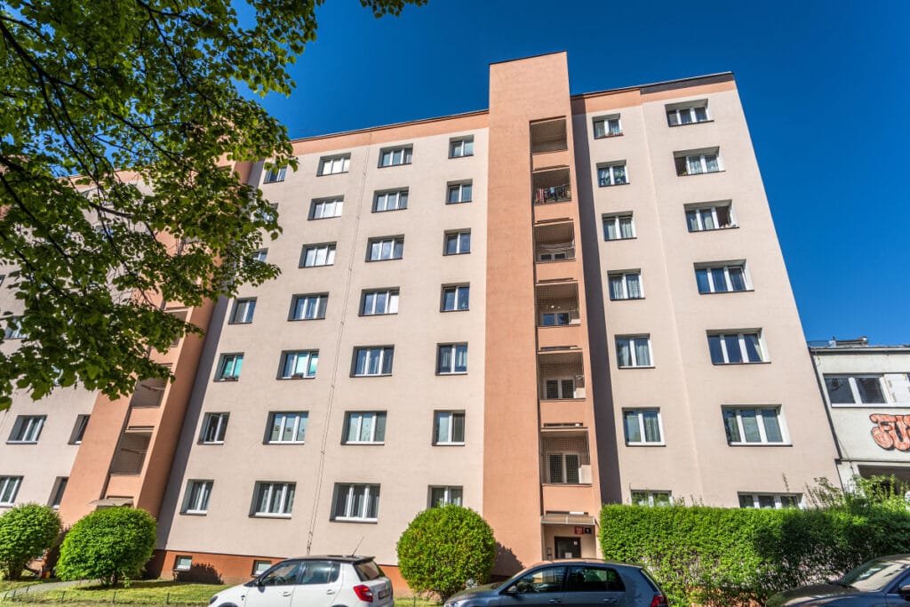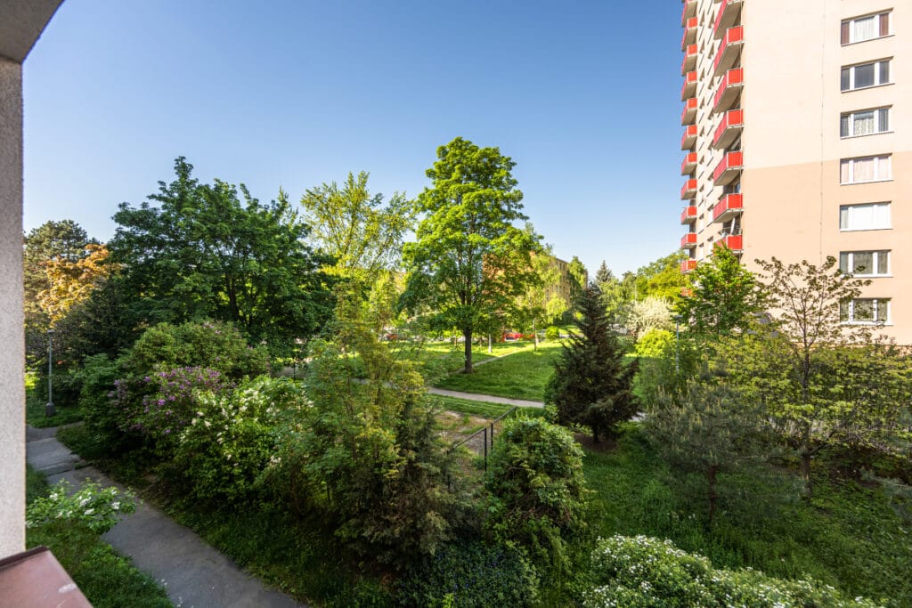 Dopravní spojení je bezproblémové – autobusová zastávka Hostýnská je vzdálena pouze 350 metrů od domu. Autobusem se pohodlně dostanete na metro A – stanici Želivského během 5 minut.