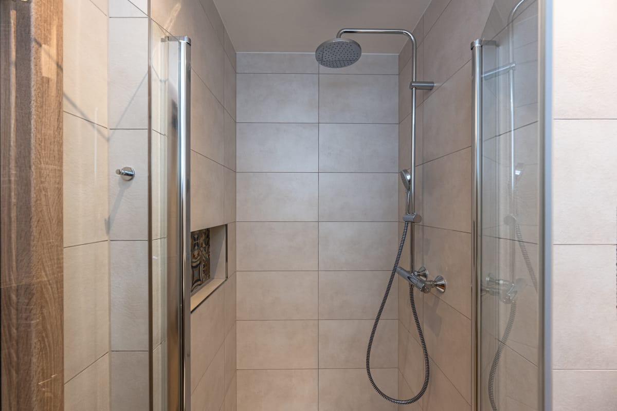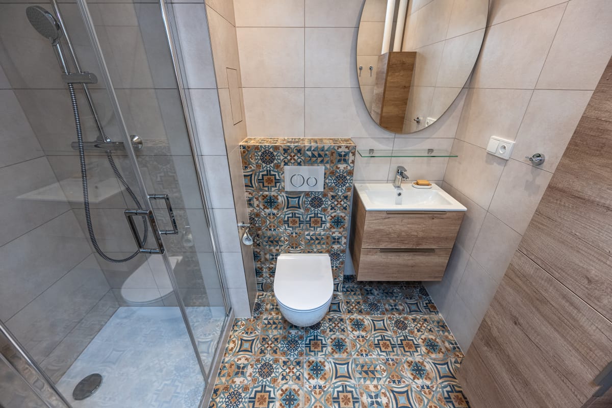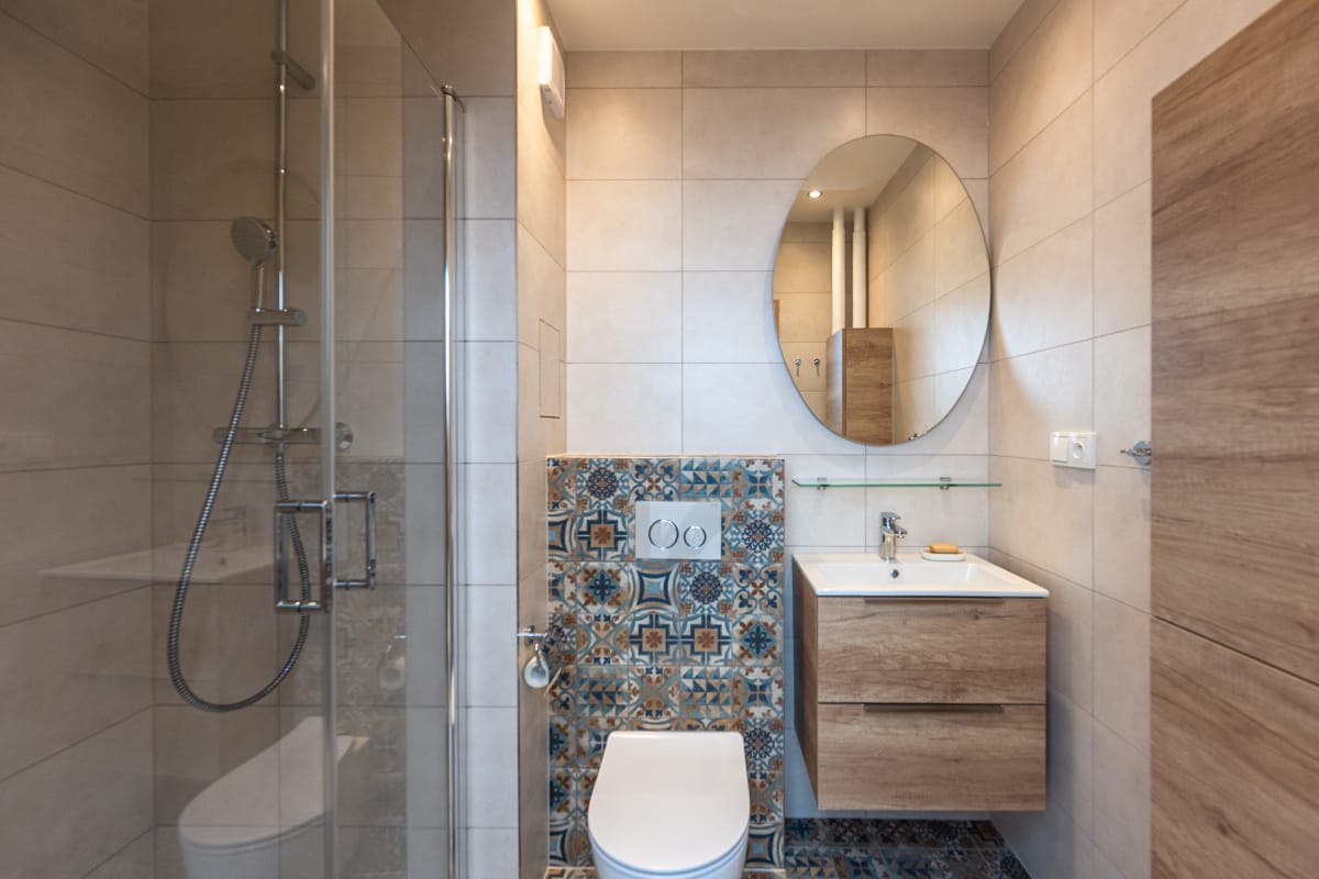 * koupelna: sprchový kout, umyvadlová skříňka, závěsná skříňka