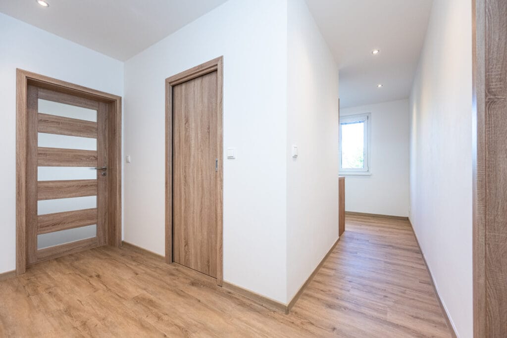 Podlahy jsou vinylové. Vytápění i ohřev vody je zajištěn dálkově. Internet – optické připojení.