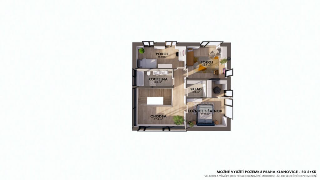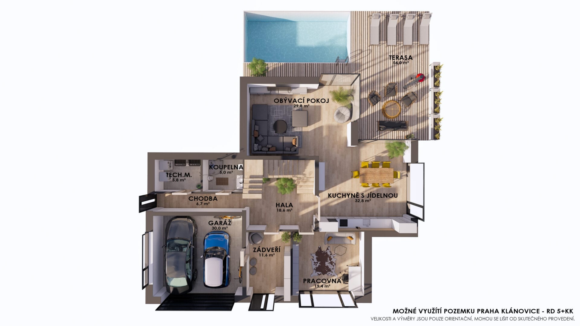 Vizualizaci možného budoucího stavu najdete v galerii, včetně půdorysů.