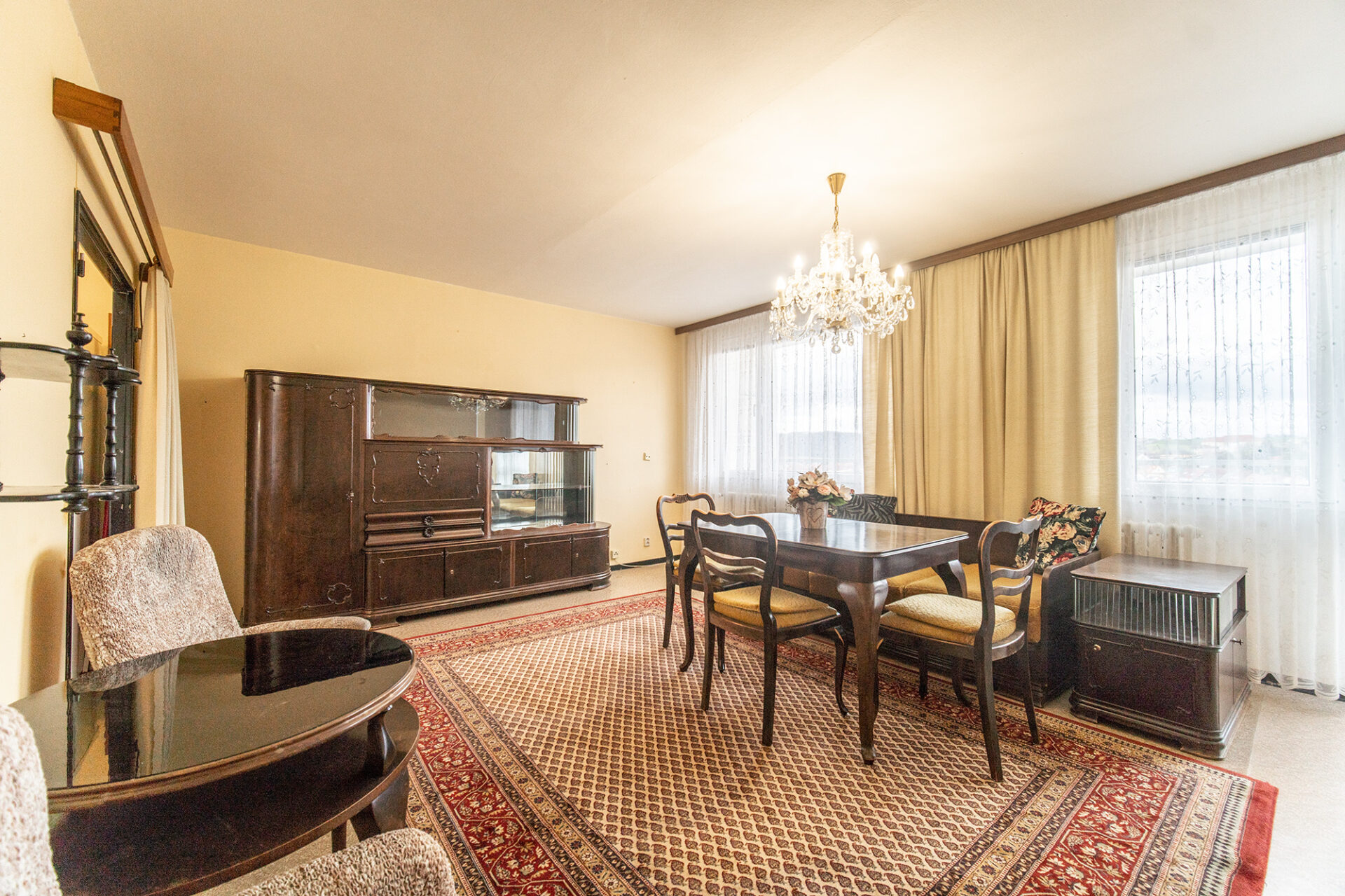 Byt je v původním ale udržovaném stavu, jádro je původní umakartové, elektřina v hliníku. Skromná kuchyňská linka obsahuje samostatně stojící plynový sporák s troubou, digestoř, dřez a lednici. V koupelně je umístěna vana a umyvadlo. Pokoje jsou vybaveny zachovalým nábytkem. K bytu dále náleží komora na patře (2 m2).