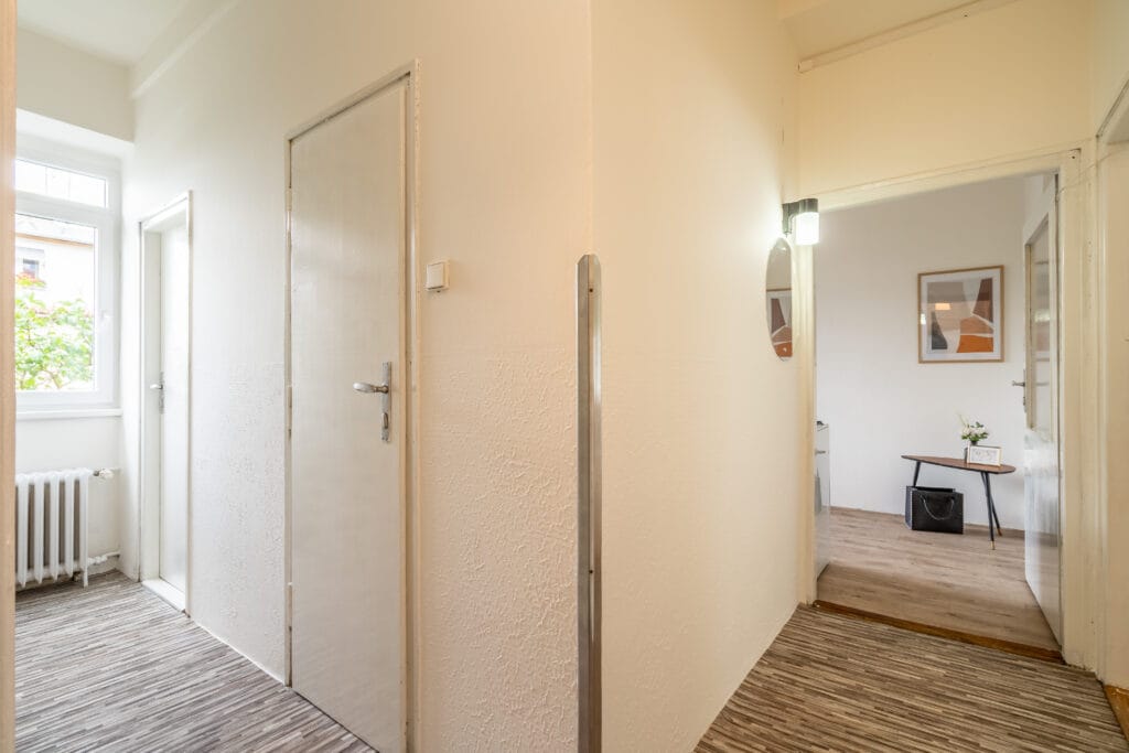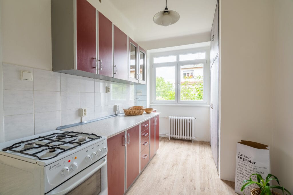 Byt je ve stavu před kompletní rekonstrukcí včetně rozvodů. Noví majitelé tak mají jedinečnou příležitost získat pomocí rekonstrukce moderní a prostorné bydlení v lukrativní části Prahy.