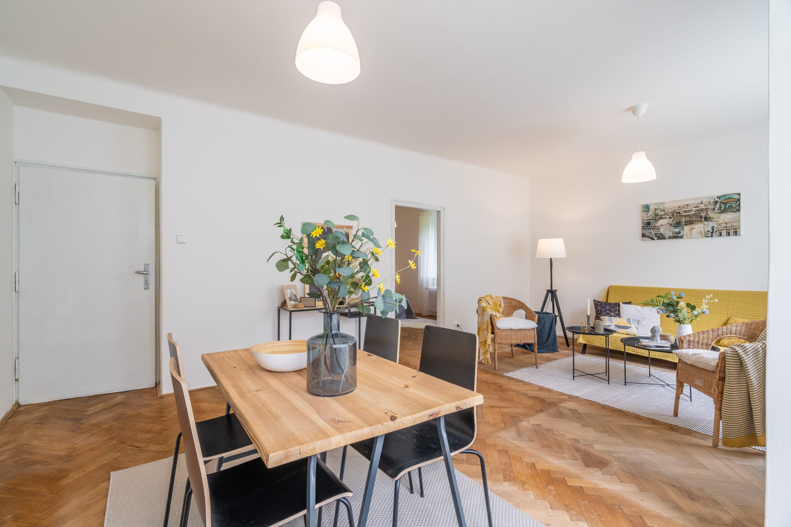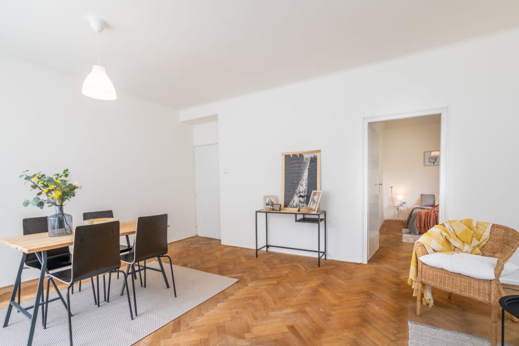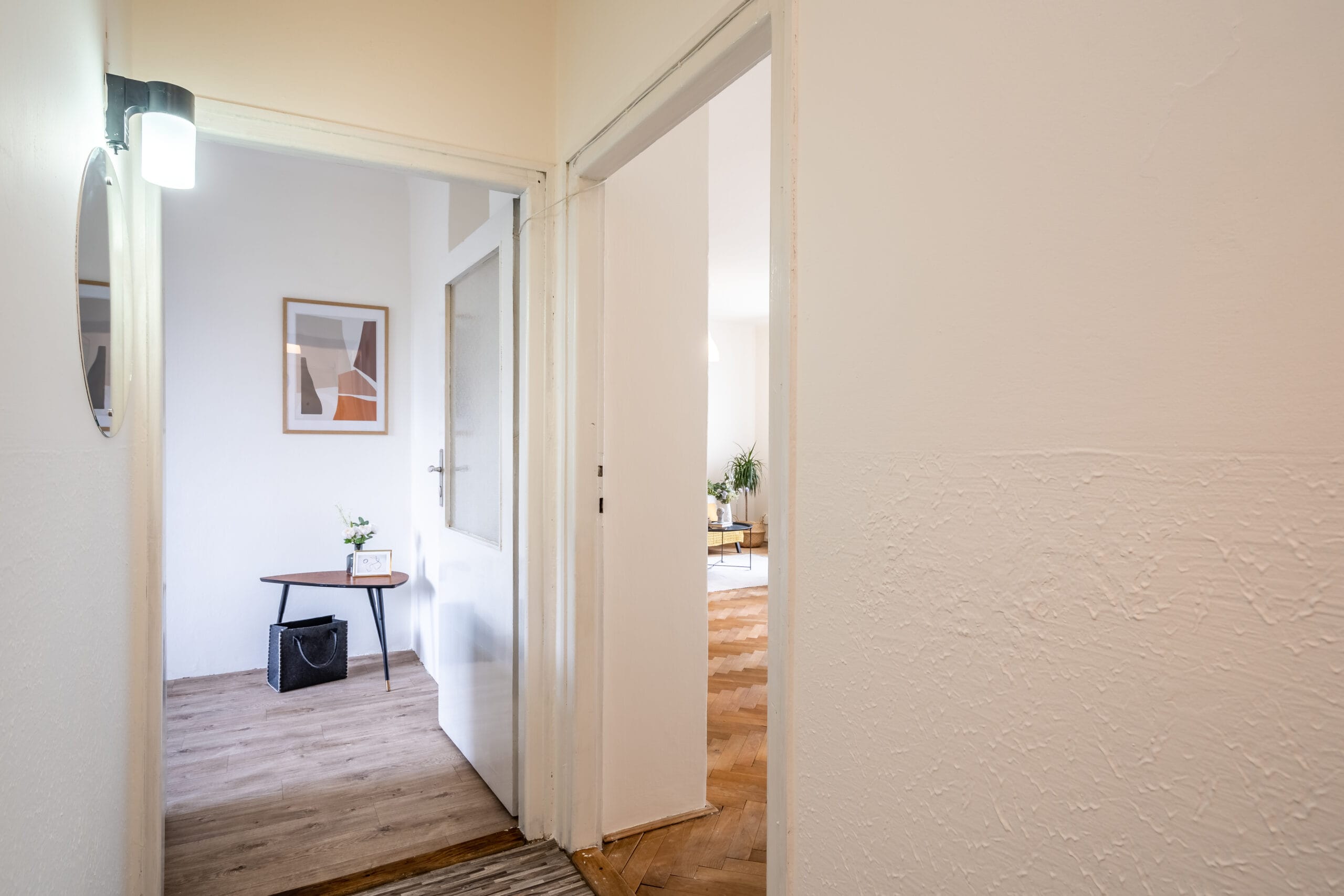– Snadná dostupnost do centra města – autobusová stanice Urbanova se nachází 4 minuty chůze od domu, autobusem dojedete na metro Anděl za 8 minut.