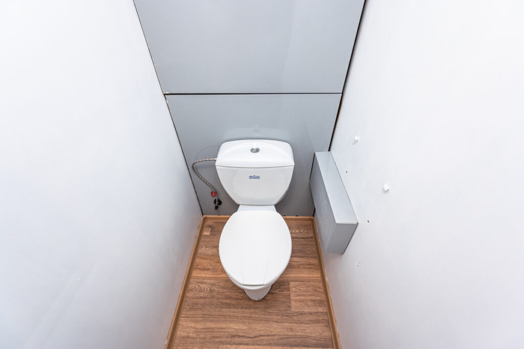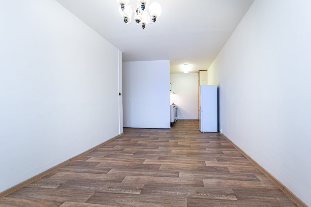 Podlahy čerstvě vymalovaného a čistého bytu pokrývá linoleum se vzorem dřeva. Jádro je umakartové.