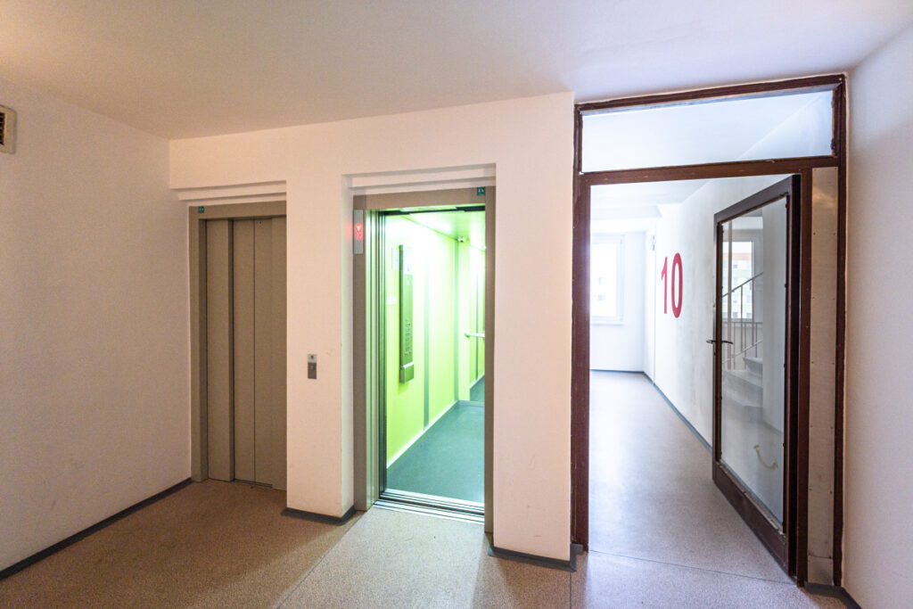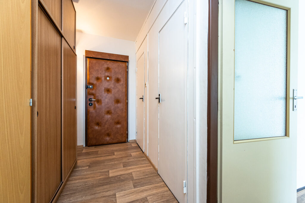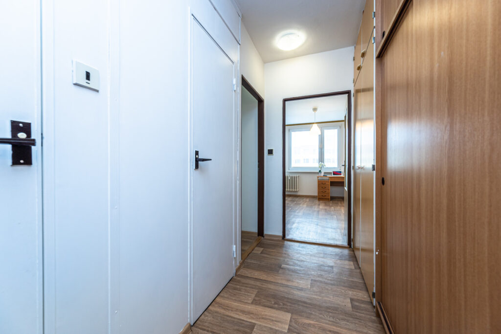 Byt se nachází v 10. patře a nabízí novému nájemníkovi prostor o velikosti 44 m2 + sklep. Byt se sestává z chodby, koupelny se sprchovým koutem, samostatné toalety, obývacího pokoje s kuchyňským koutem a neprůchozí ložnice.
