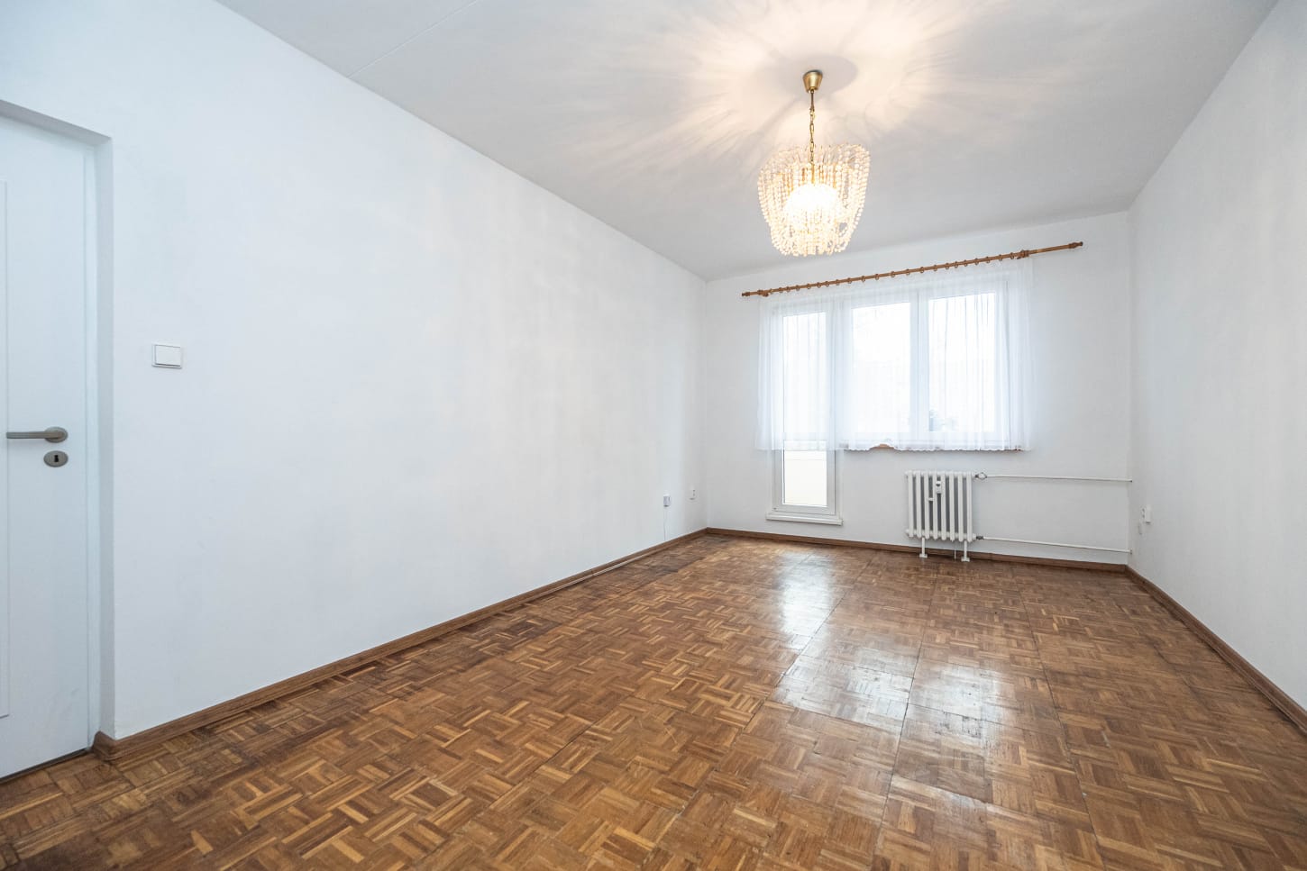 Dispozice je praktická a dobře využitelná. Byt tvoří samostatná kuchyně, prostorný obývací pokoj (18,6 m²) se vstupem na zasklenou lodžii (2,7 m²), ložnice (13,9 m²) přístupná z kuchyně, koupelna s vanou, samostatná toaleta a předsíň s vestavěnými skříněmi, které poskytují dostatek úložného prostoru.