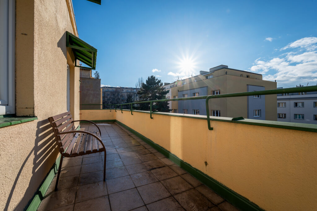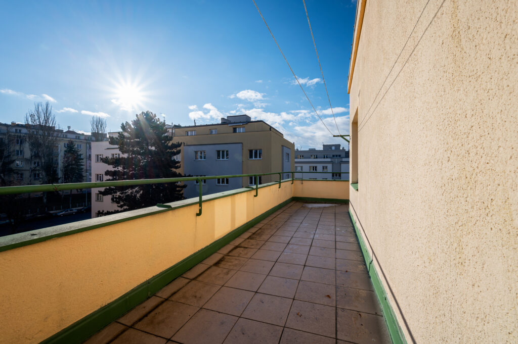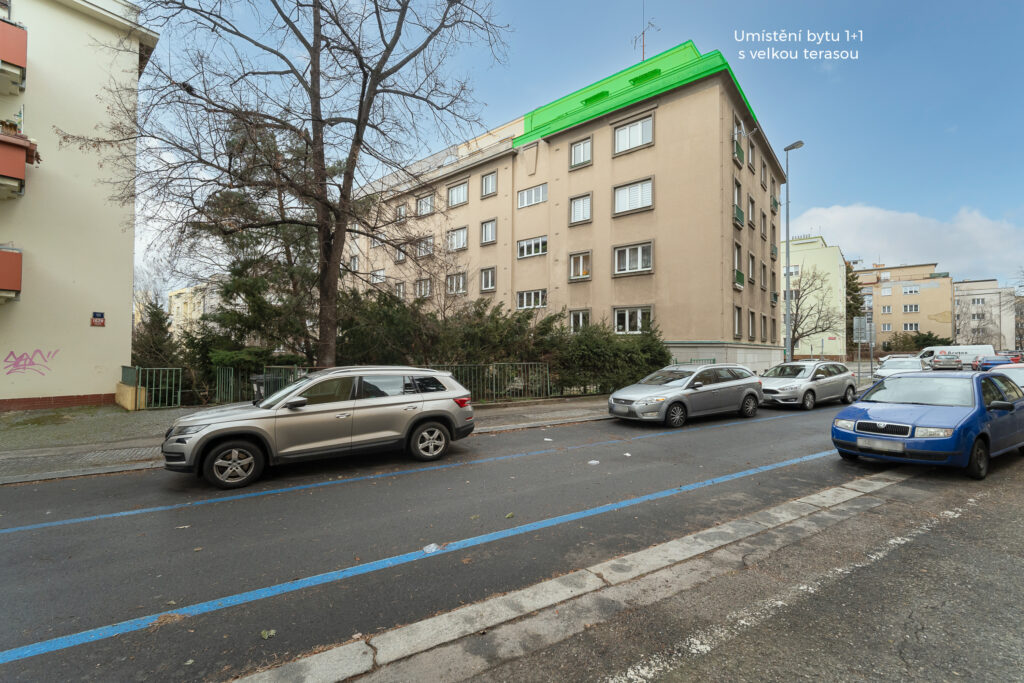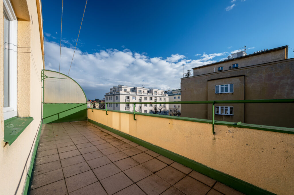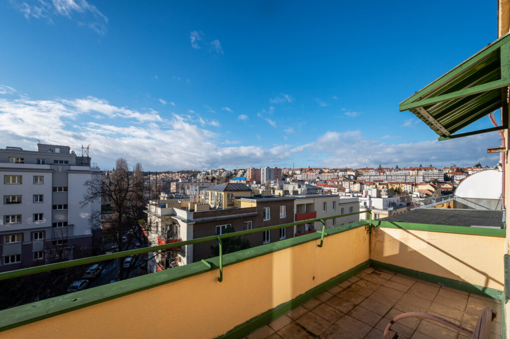 Byt 1+1 s velkým balkónem a pěkným výhledem, v žádané lokalitě na Břevnově může být váš.