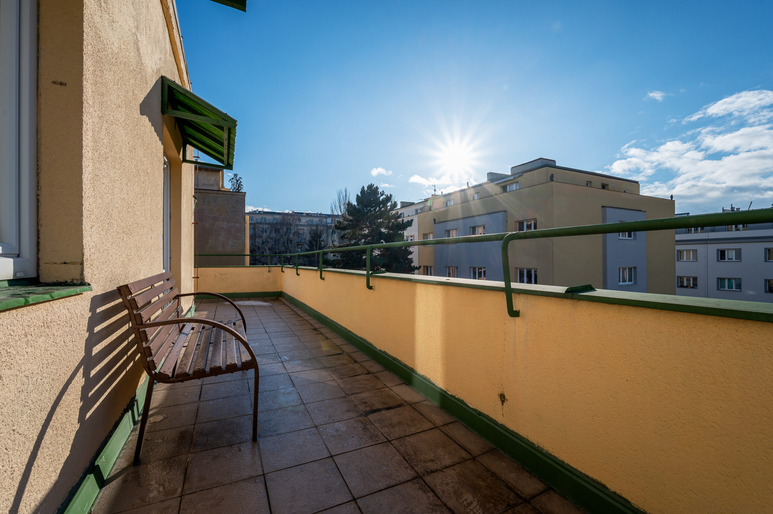 Umístění bytu v posledním patře je zárukou úžasného klidu, zároveň zajišťuje majitelům dostatek soukromí a díky balkónu se mohou kochat okouzlujícími výhledy do okolí. Třeba na Petřínskou rozhlednu.