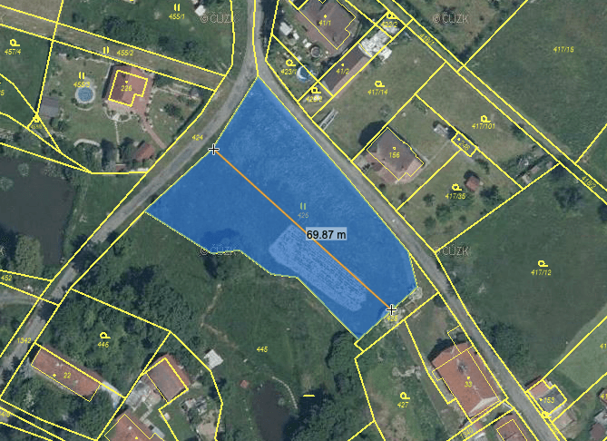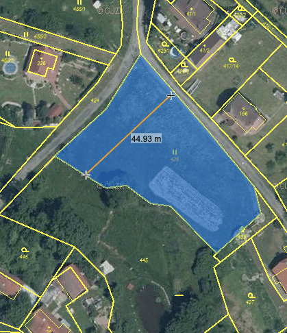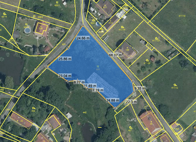 Rozlehlý pozemek pro dům nebo chalupu, mírně svažitý o výměře 2.698 m². V územním plánu obce vedený jako plocha bydlení venkovského a lze jej využít pro stavbu rodinného domu nebo chaty, chalupy. Zastavitelnost pozemku je 20 – 25%.