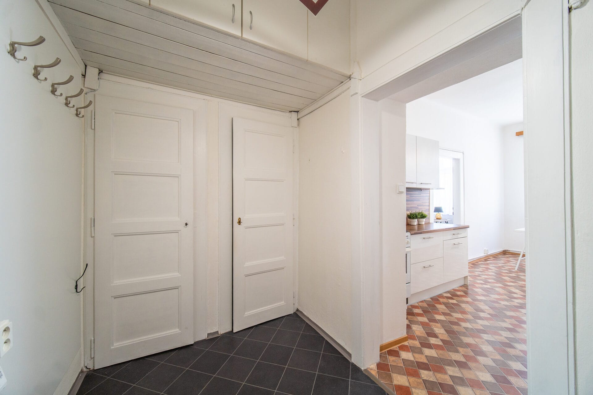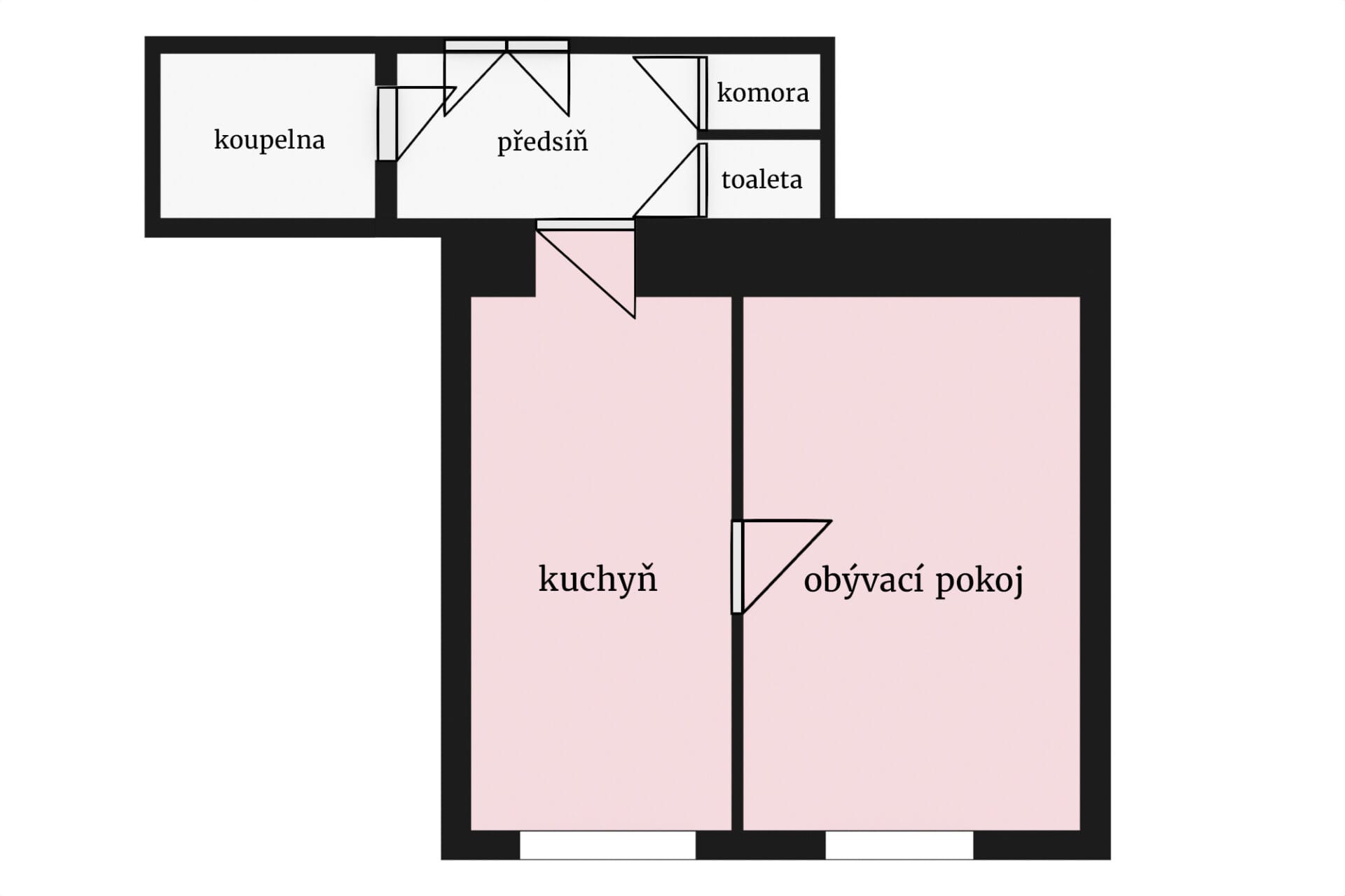 Interiér bytu tvoří předsíň ( 5,9 m²), koupelna (4,2 m2), wc (1 m²), komora (1 m2), kuchyň (14 m²) a obývací pokoj (17,7 m2). Pokoje jsou průchozí, přesnější představu získáte z půdorysu, který je součástí prezentace.