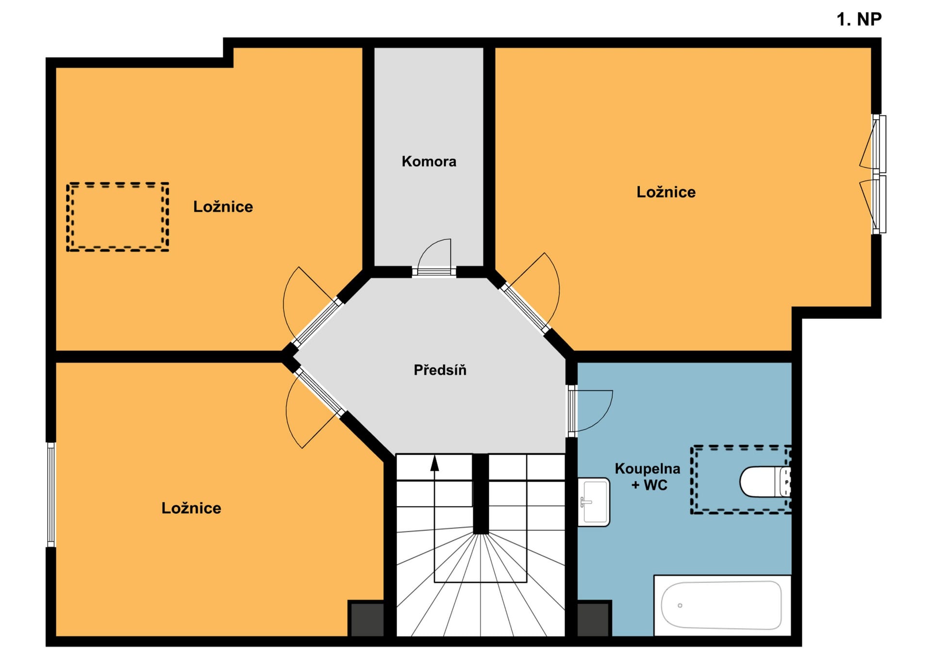 Dispozice 4+kk, dvě koupelny, šatna, dvě toalety