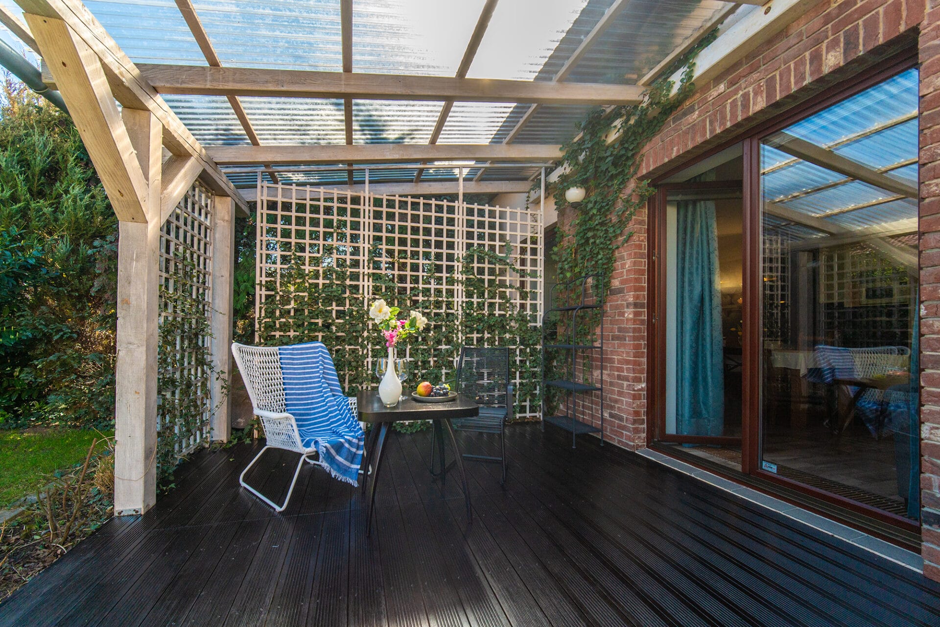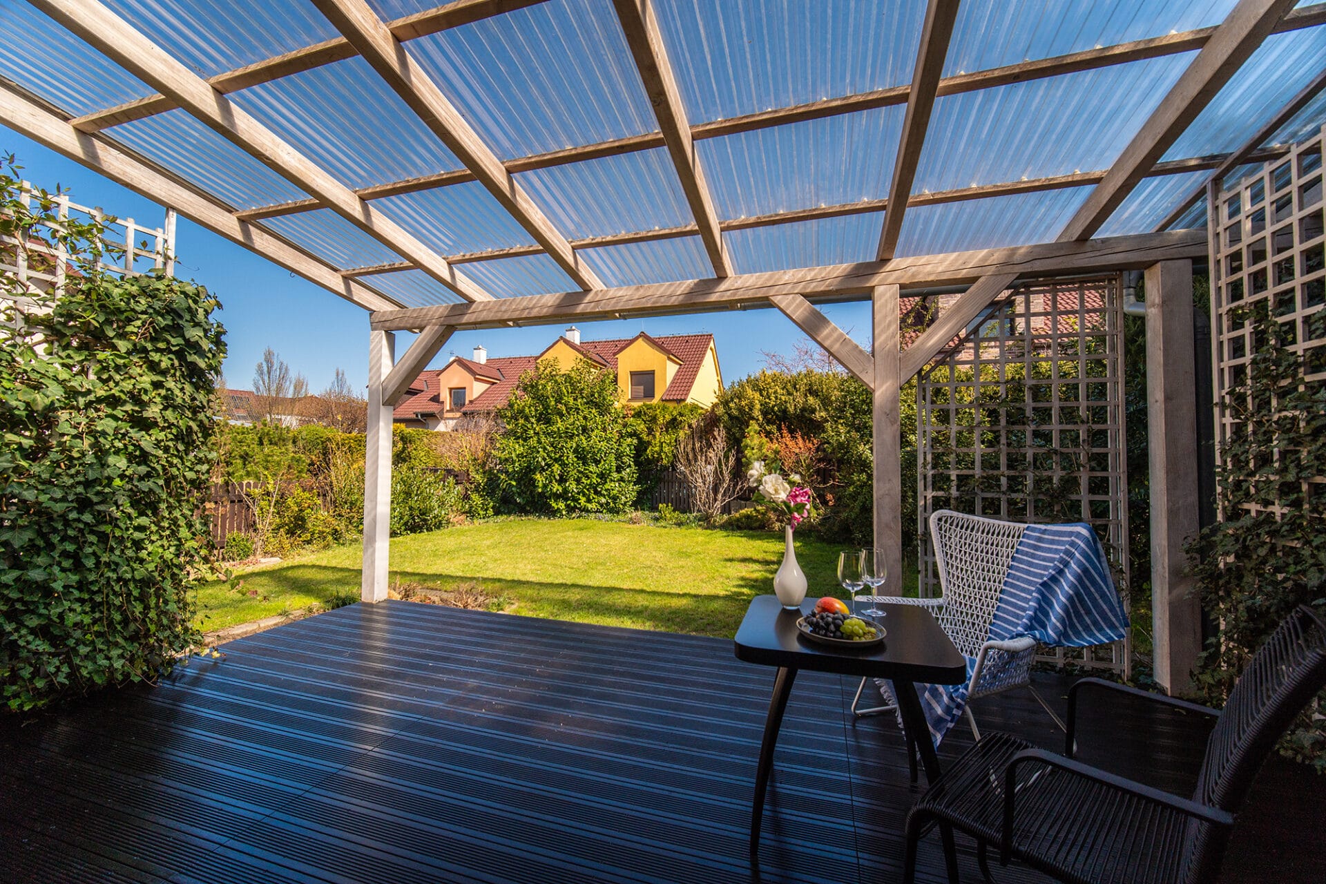 Zastřešená terasa, okrasná zahrada