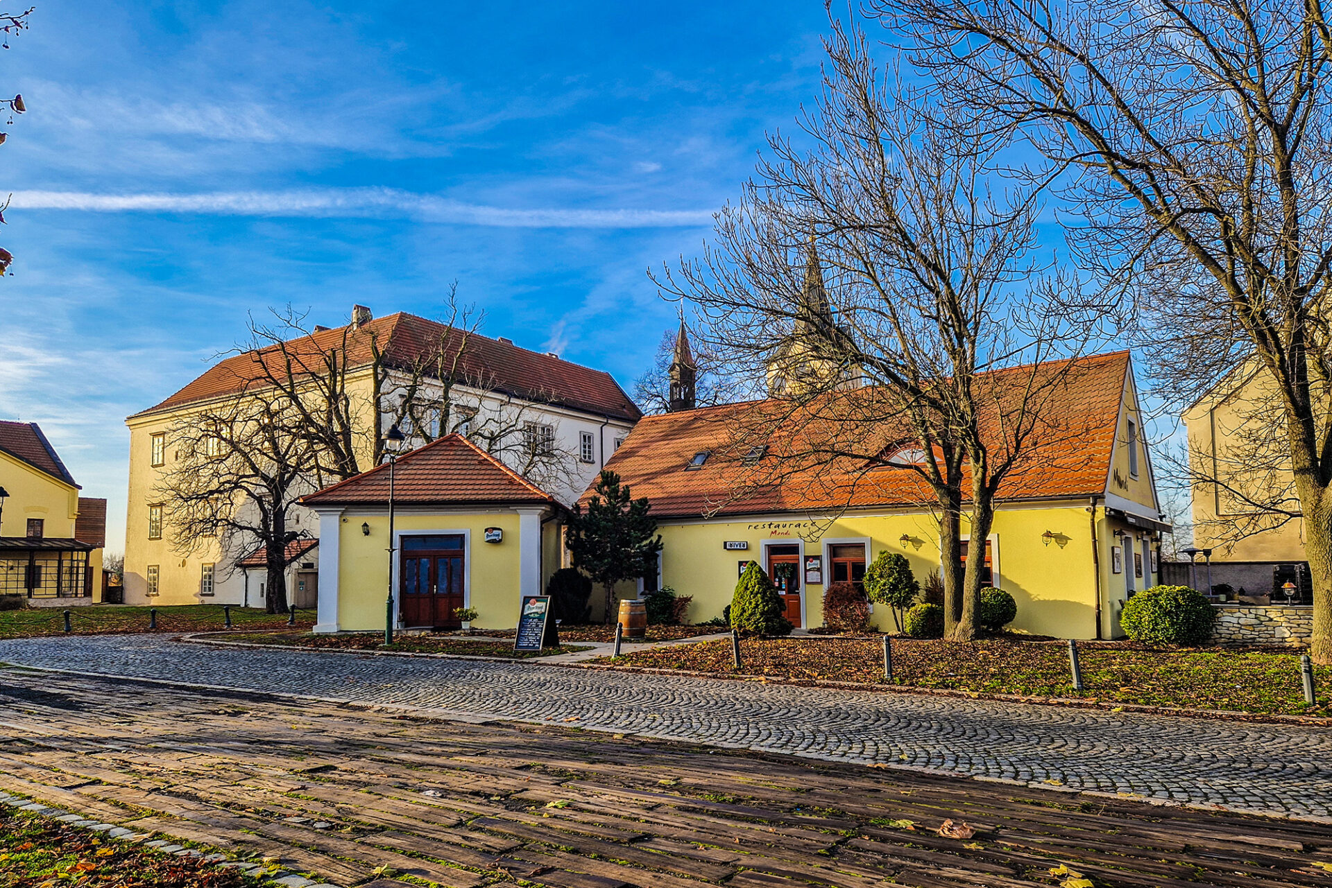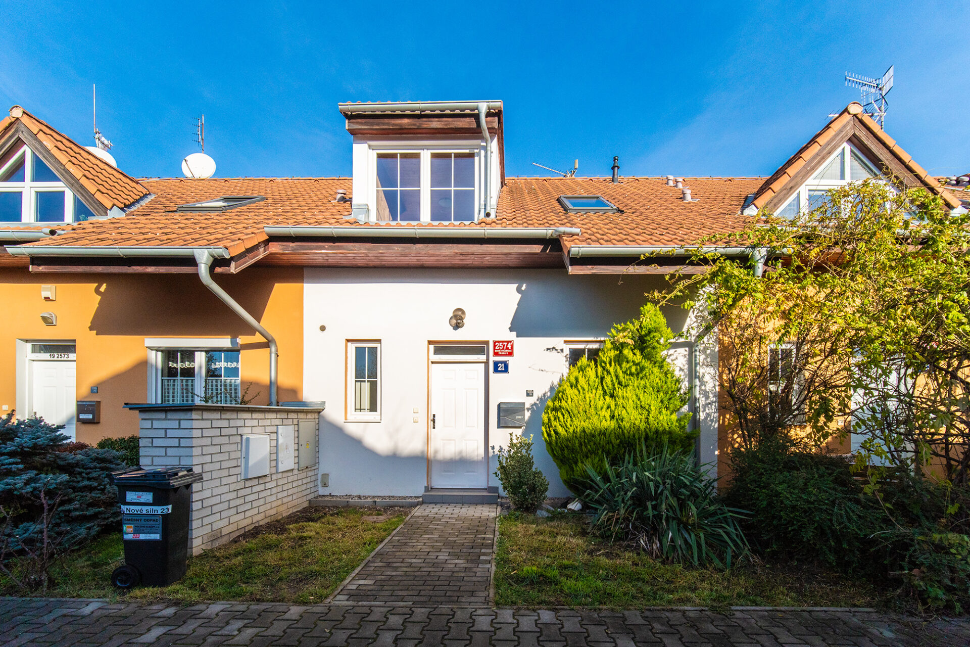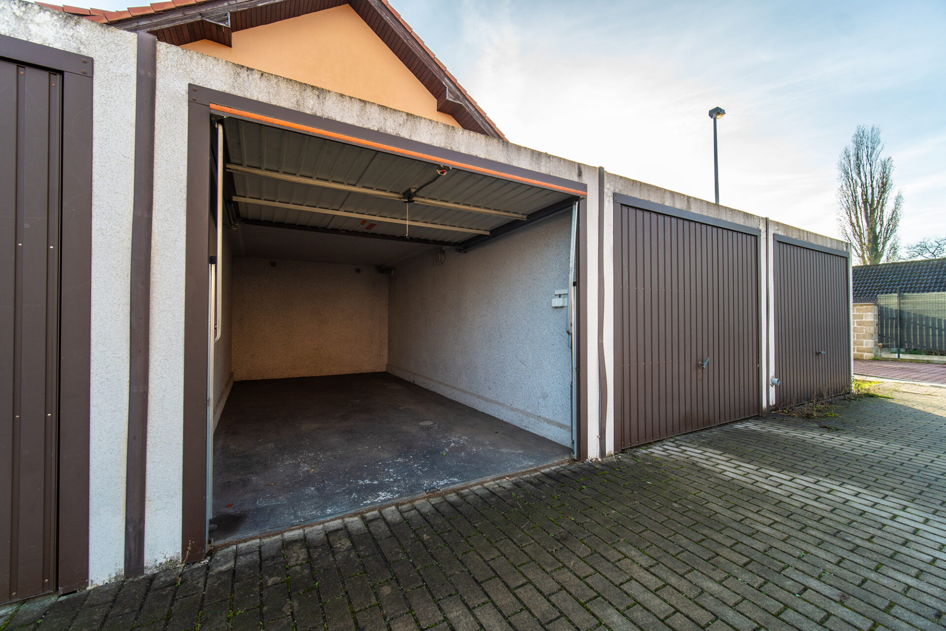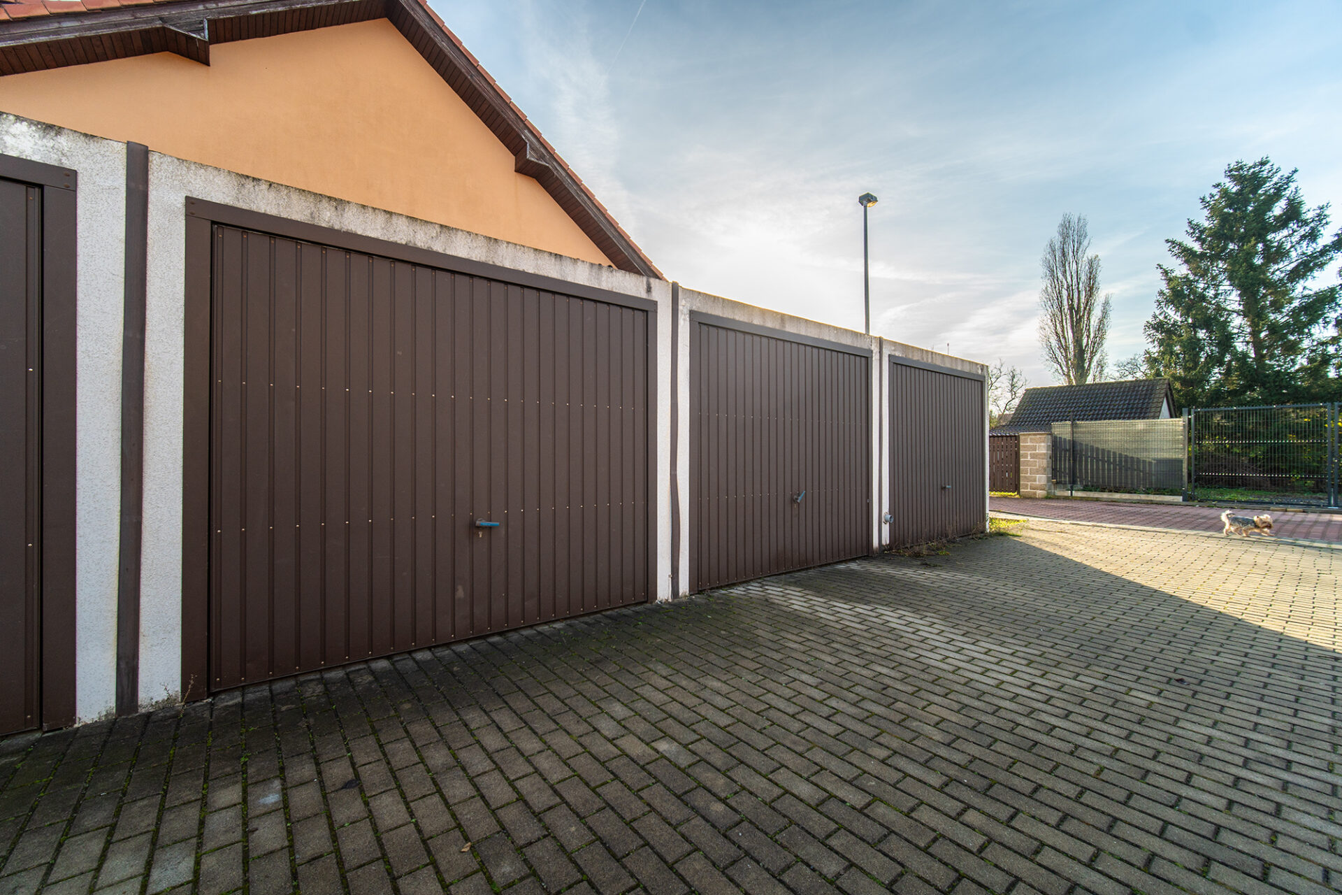 Garáž je umístěná pár kroků od domu.