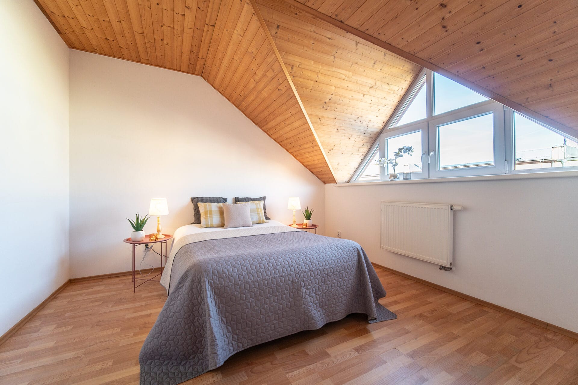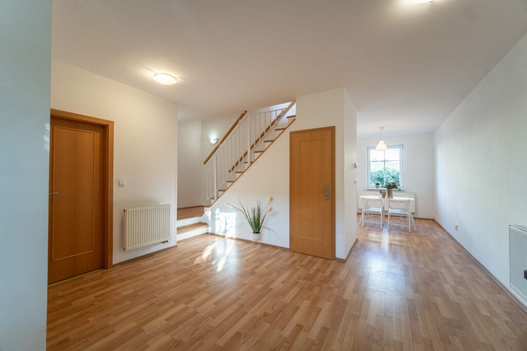 V celém domě jsou plastová okna, v obytných místnostech pokrývá podlahu plovoucí podlaha, v ostatních místnostech je dlažba. Vytápění a ohřev vody zajišťuje plynový kotel a bojler.