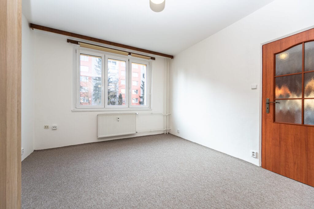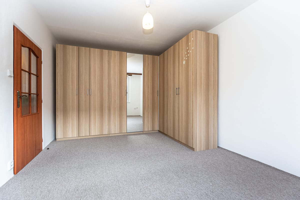 Ložnice – světlá, s velkým oknem a novým kobercem. Vybavená velkou rohovou šatní skříní, která poskytuje dostatek úložného prostoru.