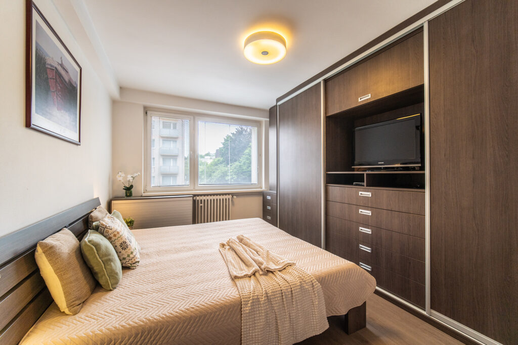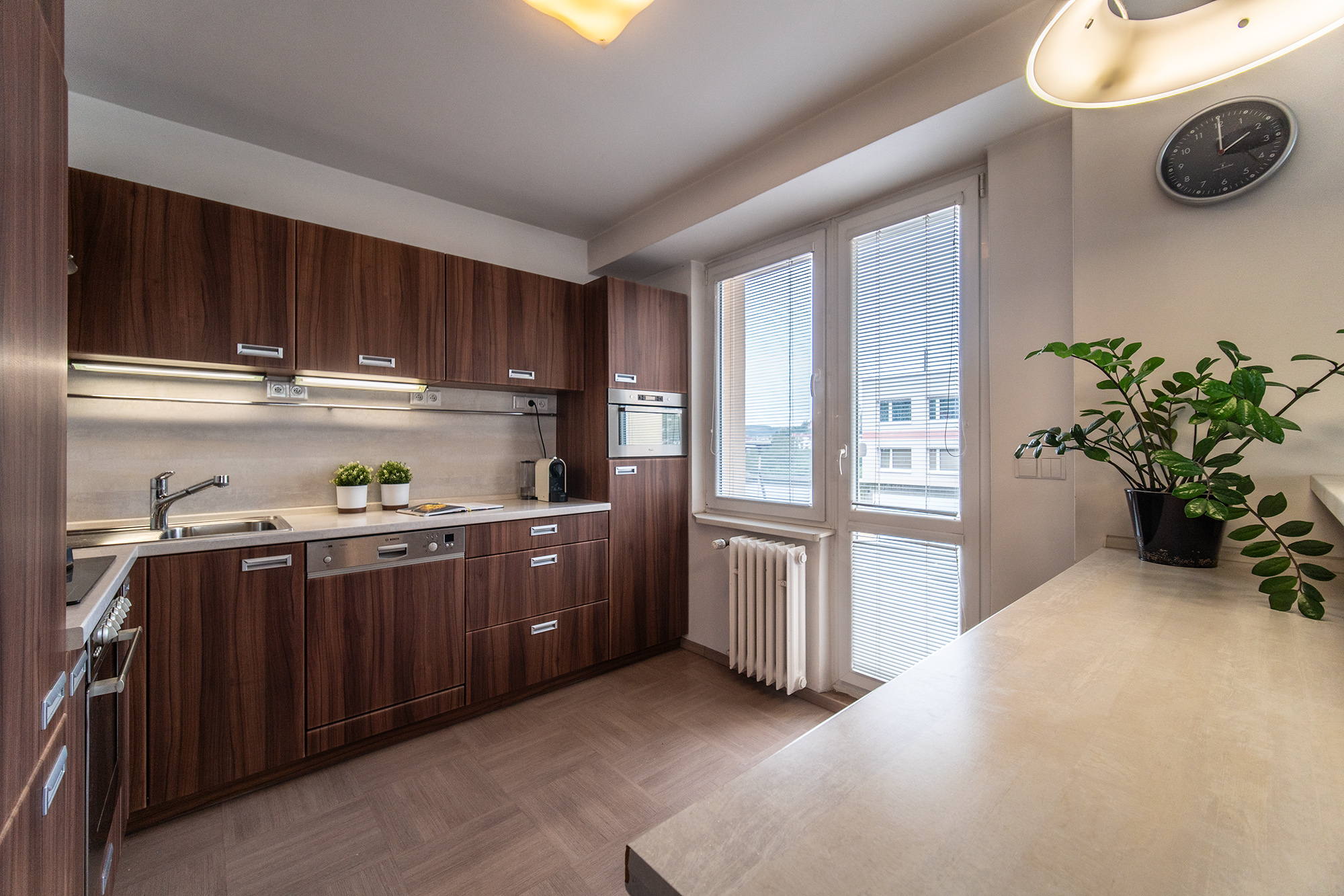 V roce 2010 prošel byt celkovou rekonstrukcí – elektroinstalace, podlahová krytina, omítky, dveře, koupelna i kuchyňská linka. Byt se prodává včetně vybavení, které je v bytě nyní (kuchyňská linka, vestavěné skříně, nábytek atd.). Vytápění zajišťuje kotelna v domě, ohřev vody elektrický bojler (nový, cca 1,5 roku starý). Okna jsou plastová, podlahy – parkety v obývacím pokoji, v kuchyni a v ložnicích plovoucí podlaha, v ostatních místnostech dlažba.