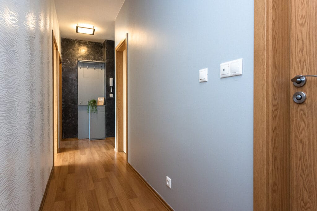 Podlahu v obytných místnostech pokrývá laminátová podlaha, v ostatních místnostech dlažba. Vytápění je ústřední dálkové. Některé stěny jsou vymalované omyvatelnou barvou, jiné dotvářejí úžasnou atmosféru díky moderním tapetám. Světla jsou napojena na systém Chytré domácnosti. V oknech jsou pro vysoký komfort instalované jak vnitřní tak i předokenní žaluzie.
